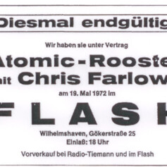 Noch eindrucksvoller fand ich seinen Auftritt mit Atomic Rooster am 19. Mai 1972 in der Wilhelmshavener Discothek FLASH in der Gökerstraße 25, wenn sich noch jemand erinnern kann!?
