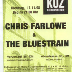 Seither bin ich eingeschworener Chris Farlowe-Fan und habe bis heute zig Konzerte mit ihm besucht, egal ob mit Colosseum, mit dem Rhythm´n´Blues Train, den R&B Allstars, den Soulmen, der Norman Beaker Band oder aktuell mit der Hamburg Blues Band. Die Konzerte waren mir jeden Penny wert, denn der Mann hat immer geliefert, und mehr als das, er hat meine Seele berührt, selbst mit einem gebrochenen Bein im Mainzer Kulturzentrum KUZ (am 17.11.1998), einen Tag nach einem Sturz von der Bühne.